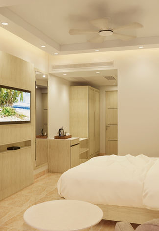 The design of the guest room is modern and minimal with a hint of detail which echoes Goa flavours. There is warmth and sophisticated character in the clean modern lines. The use of light colours and soft warm tones makes the space a welcoming comfortable room to reside in.