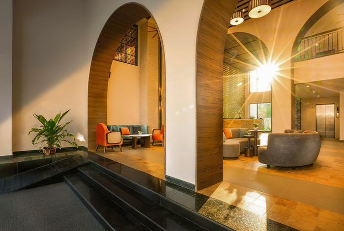 Inspired by elements of Goa Architecture like Laterite, bold colour’s, mixed decorative tiles and intricate wooden detailing this 70 Keys Resort has been designed. Public areas are open, allowing for the sound of water in the fountains and the local artwork inspired interiors with custom tiled patterns and wooden beams to resonate with the local aesthetic and culture.